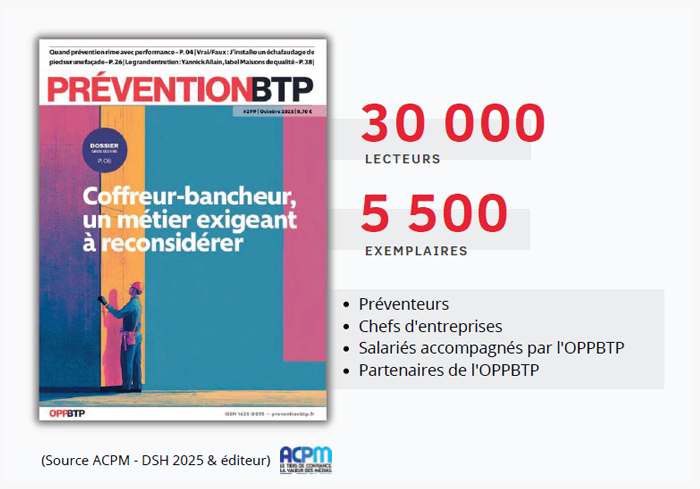 Annoncez sur le magazine PréventionBTP, la référence de la presse professionnelle en prévention dans le BTP